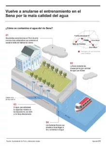 «Hay una mejora continuada desde el domingo, esperamos estar dentro del nivel autorizado para el baño», constató también el lunes el vicealcalde de París y responsable de Deportes en el Ayuntamiento, Pierre Rabadan, sobre el nivel de calidad del agua.